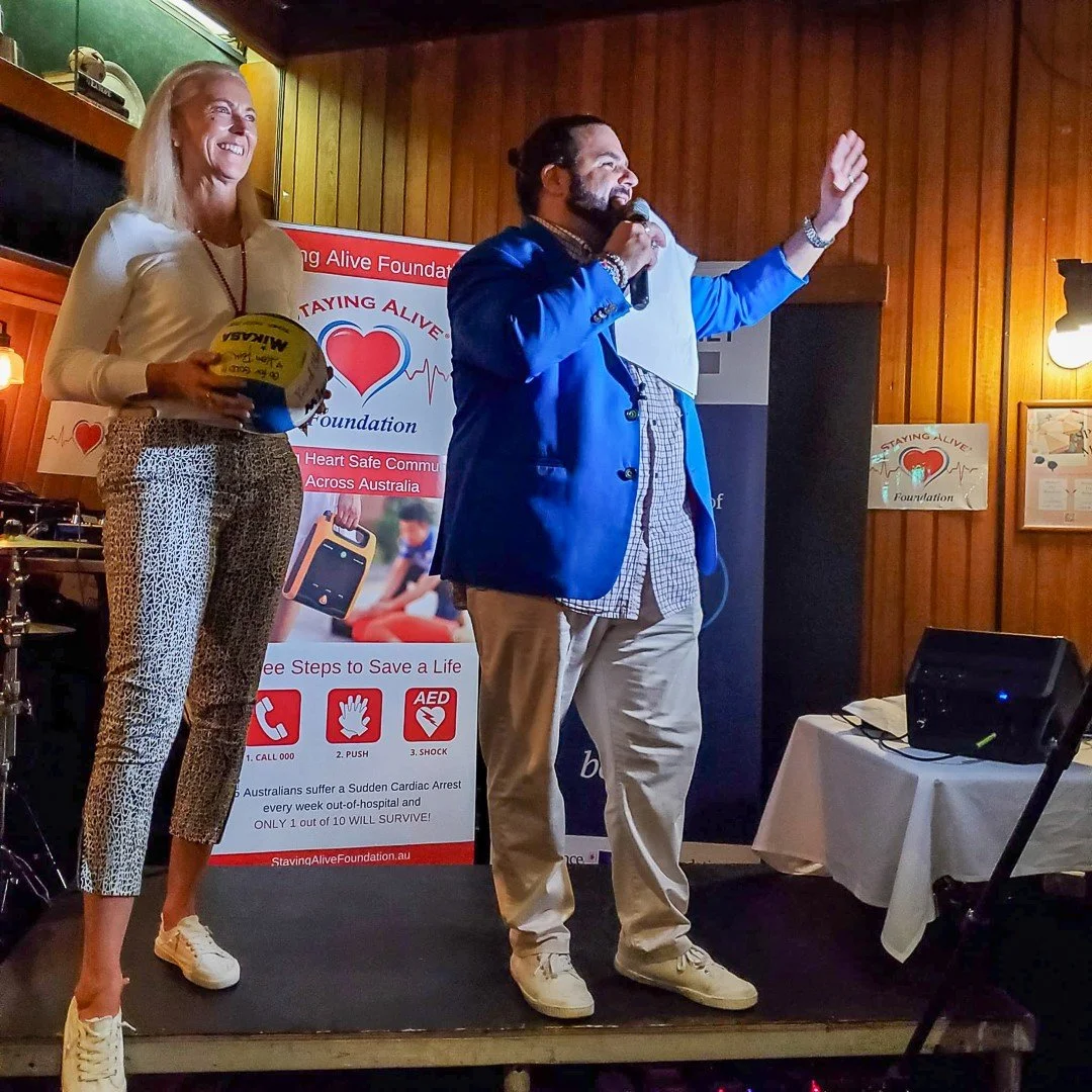 A FUN and successful and FUN Staying Alive Foundation Launch at the Mosman Rowers Club with mission to create Heart Safe Communities across Australia by donating AED Defibrillators, raising awareness and educating Australians on how to help save a life in case of Sudden Cardiac Arrest 'out-of-hospital'. Find out more…